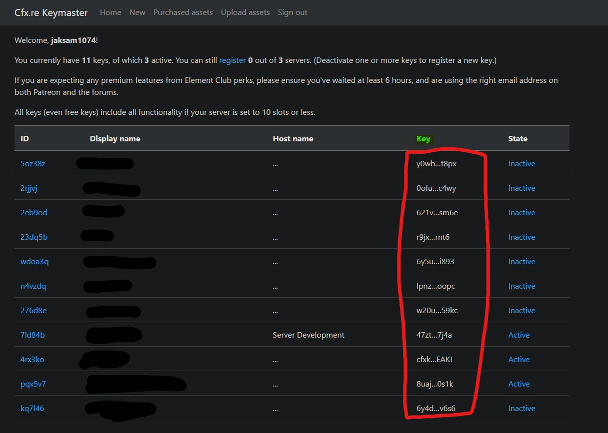 5. If the account you are using in [FiveM keymaster](https://keymaster.fivem.net/) owns the script(s), you have to verify if the **server key** your server is using, it's generated by the same account
