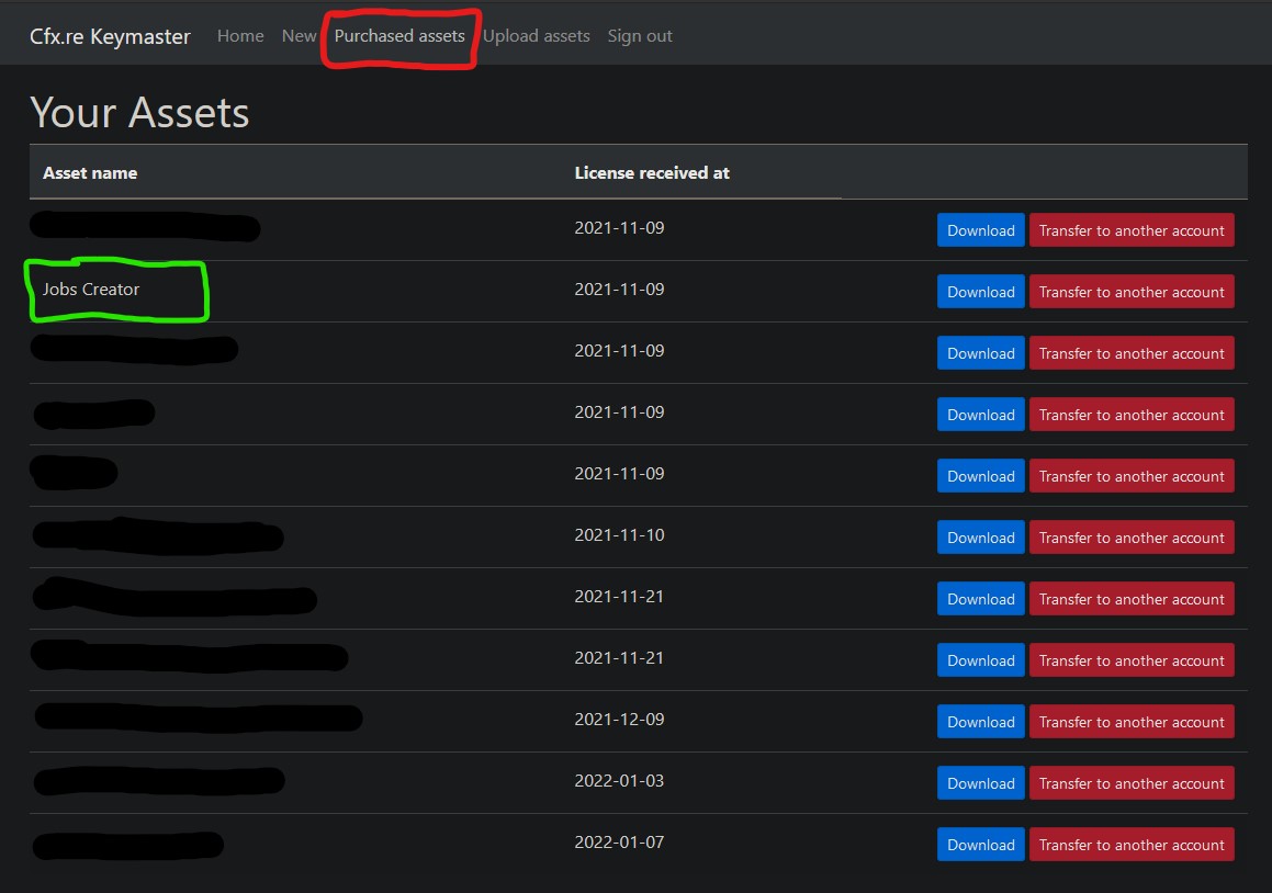 4. Verify if in the account which you are logged in [FiveM keymaster](https://keymaster.fivem.net/) owns the script(s) you are trying to use. If the script is not there, it means you used a different account on Tebex, or you have transferred the script to another account\