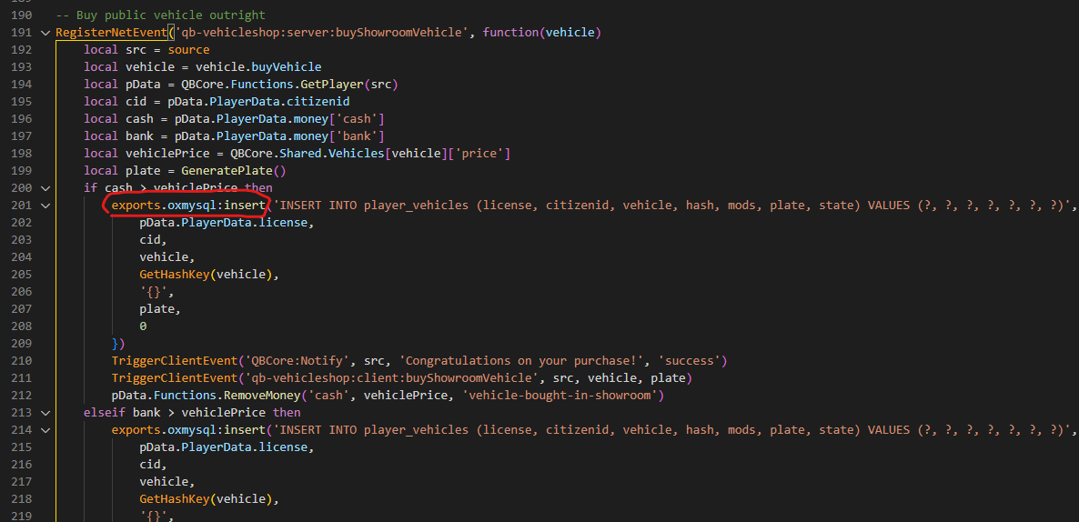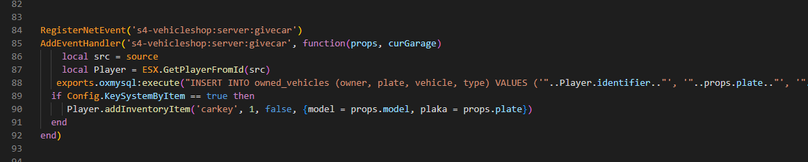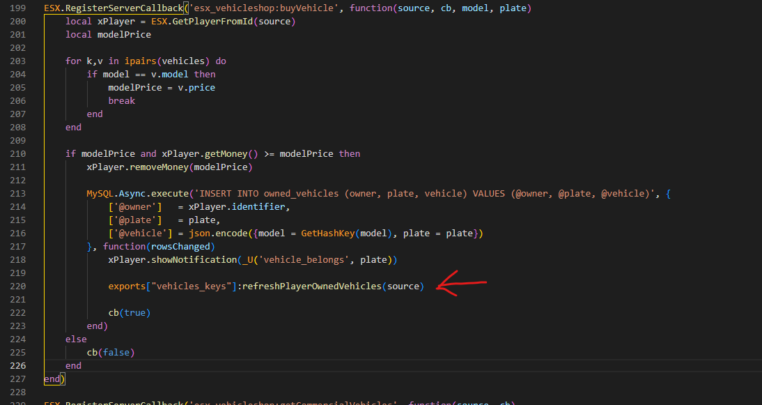 Go to `esx_vehicleshop/server/main.lua` (the same file as before) and search for the following code: