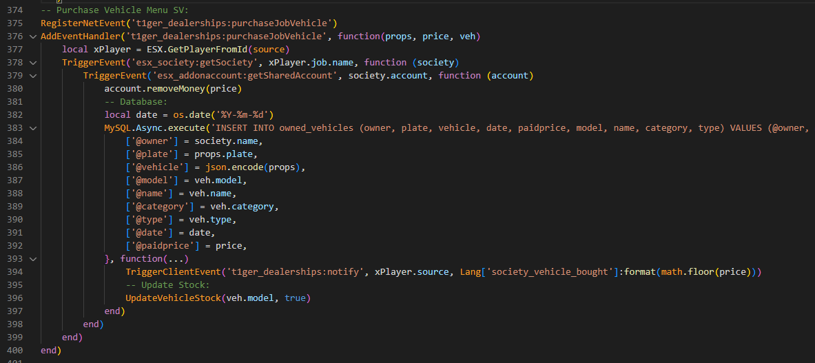 Go to `t1ger_dealerships/server/main.lua` (same file as before) and search for the following code: