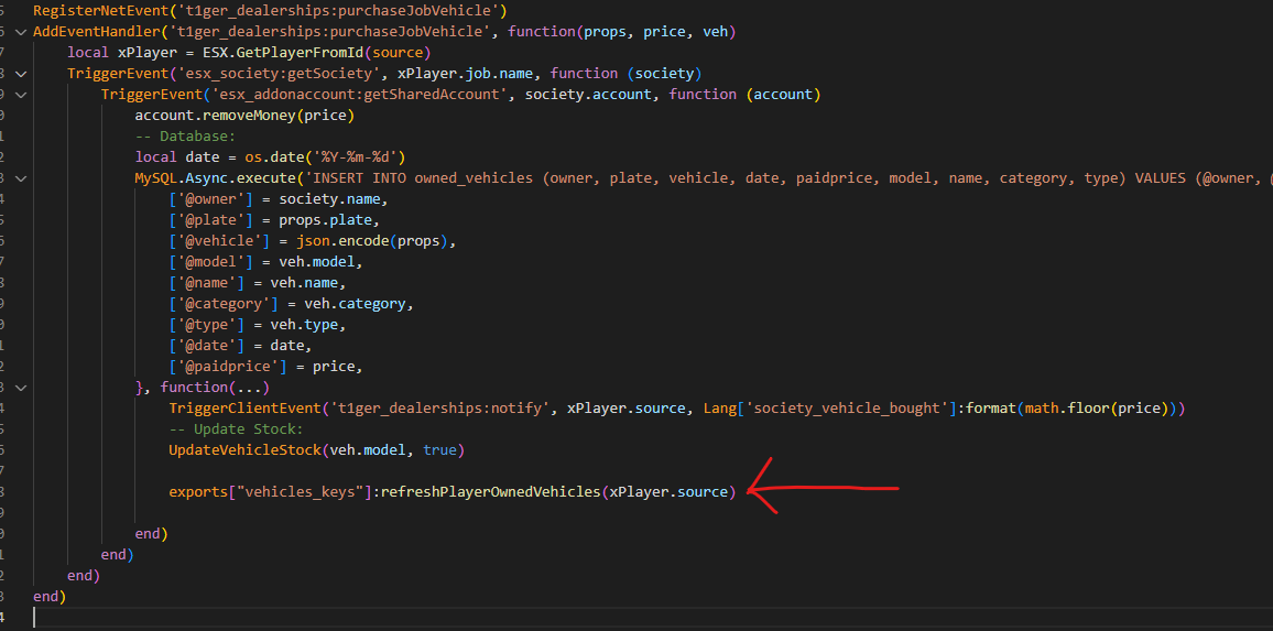 Go to `t1ger_dealerships/server/main.lua` and add the following line below **all codes** (more than one) like as shown in the example